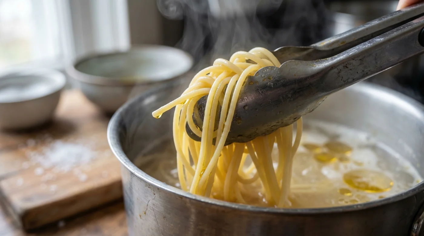 | Süzme ve Bekletme | Süzmeden hemen önce 1 kepçe nişastalı su (yaklaşık 50 ml) ayırmak. | Suyun tamamını lavaboya dökmek veya süzgeçteyken hamuru soğuk sudan geçirmek. |