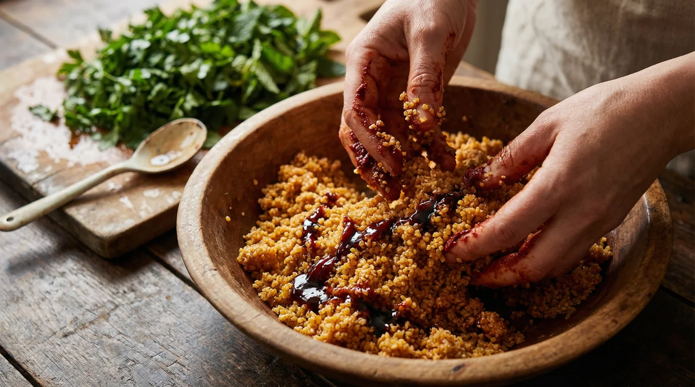 Antakyalı eski bir meze ustası olan Cemal Usta ile yıllar önce salaş bir esnaf lokantasında sohbet ederken bana bu işin sırrını fısıldamıştı. Çayını yudumlarken, “Bulgur topraktır, ekşiyi o emmeli; yeşillik ise rüzgardır, sadece üzerinde esmeli,” demişti. Usta, nar ekşisini hiçbir zaman taze otların üzerine dökmezdi. Bulgur henüz salçayla yoğrulurken, tam o aşamada ekşisini verir, tahılın o yoğun asidi kendi içine hapsetmesini sağlardı. Böylece yeşillikler eklendiğinde asit onlara doğrudan saldıramazdı.