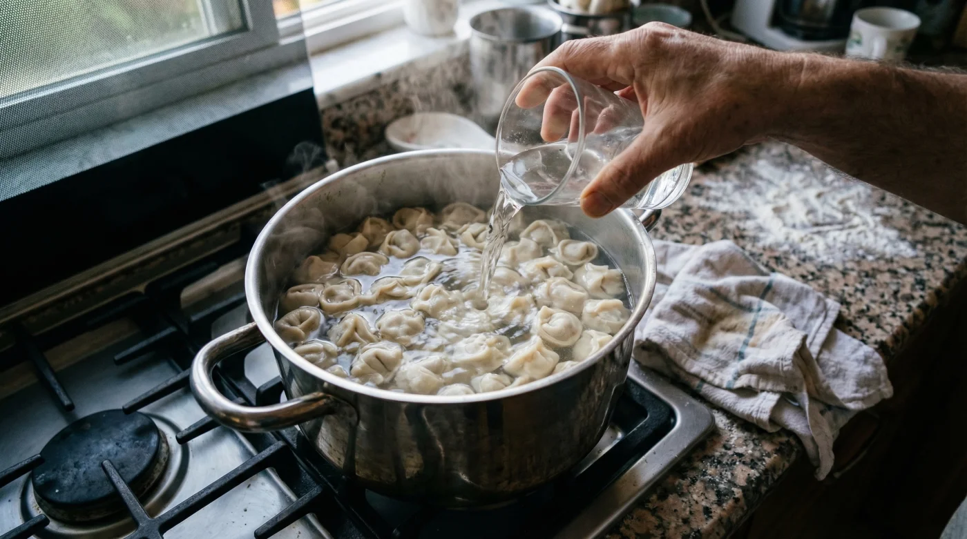 Mantılarınızı ocaktan almaya çok kısa bir süre kala, o fokur fokur kaynayan tencerenin içine tam bir bardak buz gibi soğuk su ekleyin. Bu ani ısı değişimi, kaynamayı anında durdurur ve hamuru şoklayarak sıkılaşmasını sağlar. Sıkılaşan hamur, içindeki kıymalı harcı adeta bir kasa gibi kilitler ve yırtılmaları tamamen önler.