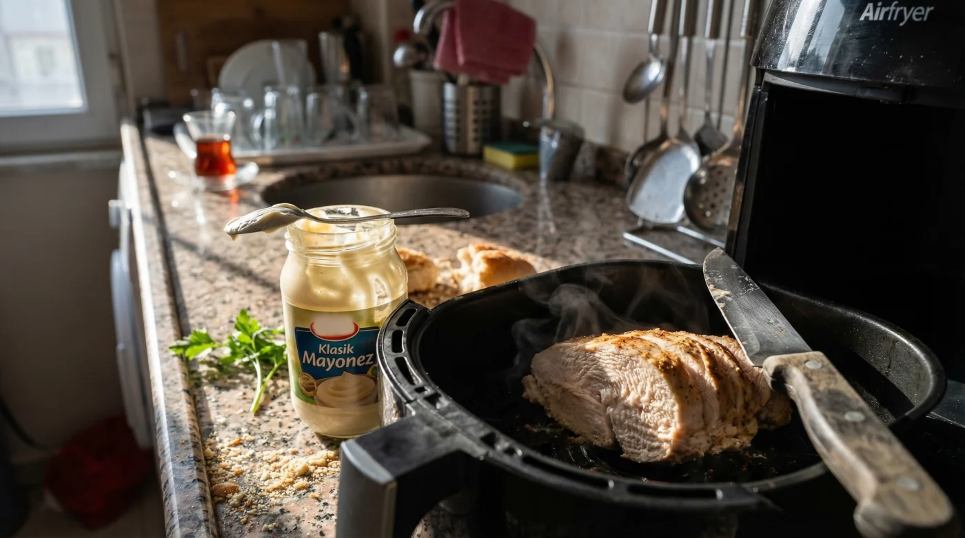 Evet, yanlış okumadınız. Airfryer cihazında dünyanın en sulu tavuk göğsünü pişirmenin sırrı, sadece 1 tatlı kaşığı (yaklaşık 5 gram) mayonez kullanmaktır. Porsiyon başına maliyeti yaklaşık 2 Türk Lirası gibi oldukça cüzi bir rakama denk gelen bu bileşen, profesyonel restoran mutfaklarının en büyük sırlarından biridir. Peki, mayonez neden yoğurdun başaramadığını başarıyor?