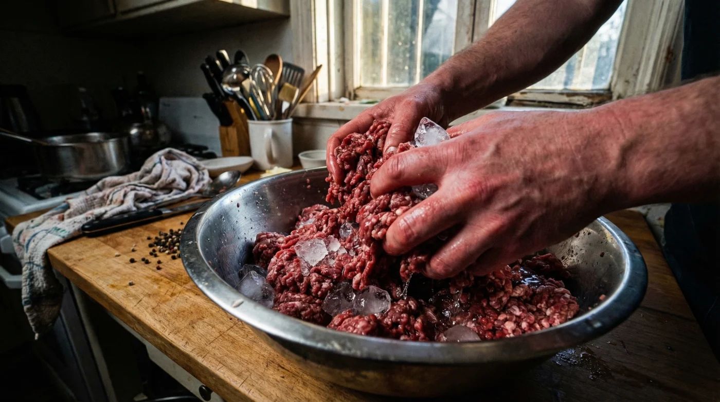 İnegöl köfte harcı uzun süre yoğrulması gereken özel bir karışımdır. Bu uzun yoğurma işlemi sırasında ellerinizin ısısı, kıymanın içindeki yağ moleküllerinin erkenden erimesine neden olur. Bu durum, etin protein yapısıyla yağın düzgün bir şekilde bütünleşmesini engeller. Sonuç olarak, köfteleri ızgaraya attığınız anda yağ etin içinde kalmak yerine dışarıya sızar ve o istenmeyen yağ kusması meydana gelir. İşte tam bu noktada buzlu su devreye girerek mutfağınızda adeta sihirli bir dokunuş yaratır.