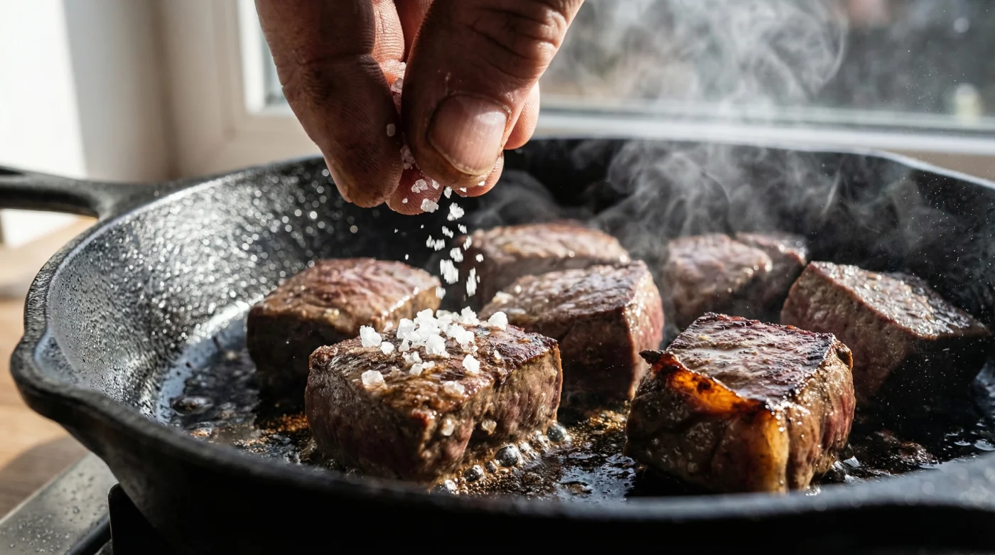 Dana ciğeri hazırlarken uygulanması gereken en kritik ve devrim niteliğindeki teknik, tuzu eti ocaktan almadan hemen önceki son 30 saniye içinde eklemektir. Bu hayati hamle, protein bağlarının erken sıkılaşmasını engellerken, lezzetin yüzeyde kusursuz bir şekilde tutunmasını ve etin içindeki o değerli nemin buharlaşmamasını sağlar.